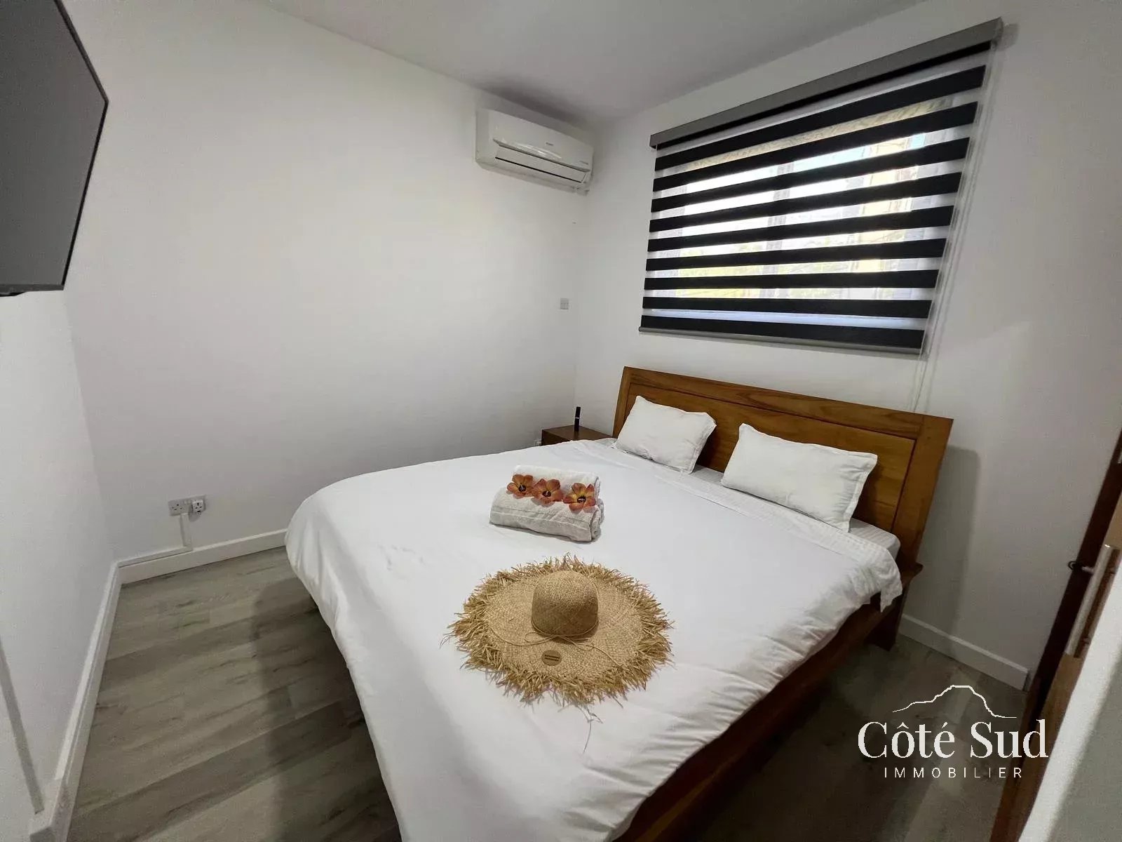 * Relaxation Extérieure : Profitez du magnifique climat mauricien sur votre balcon/terrasse carrelé, aménagé avec des sièges en osier et en rotin chics.