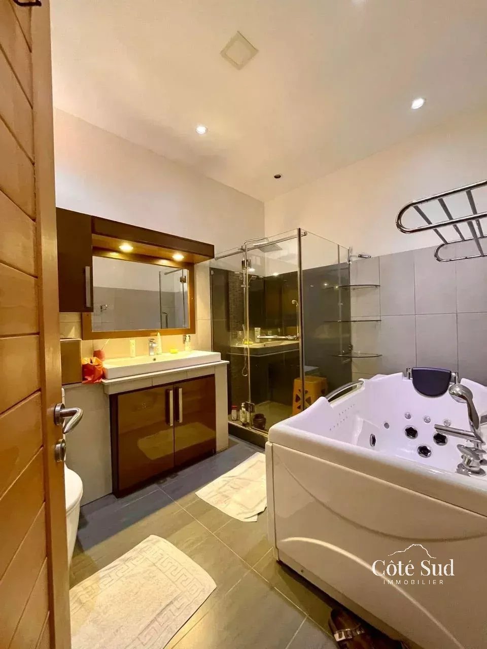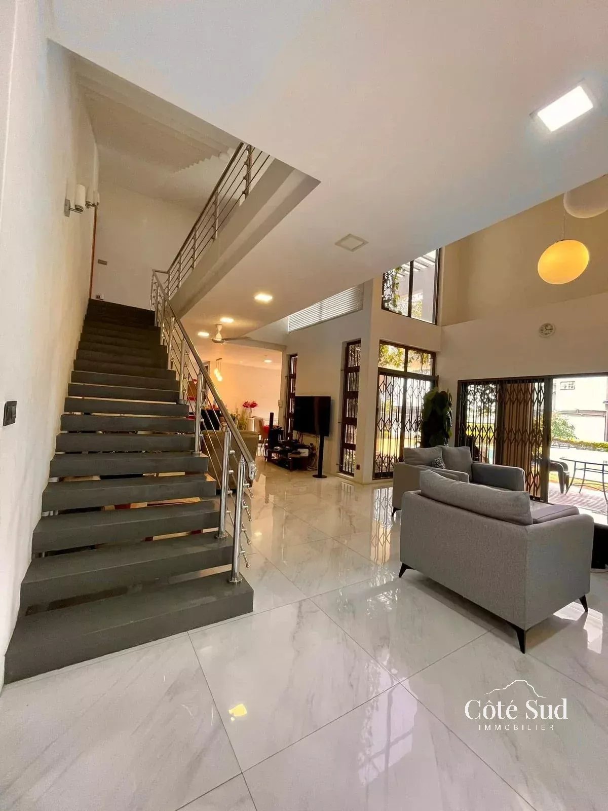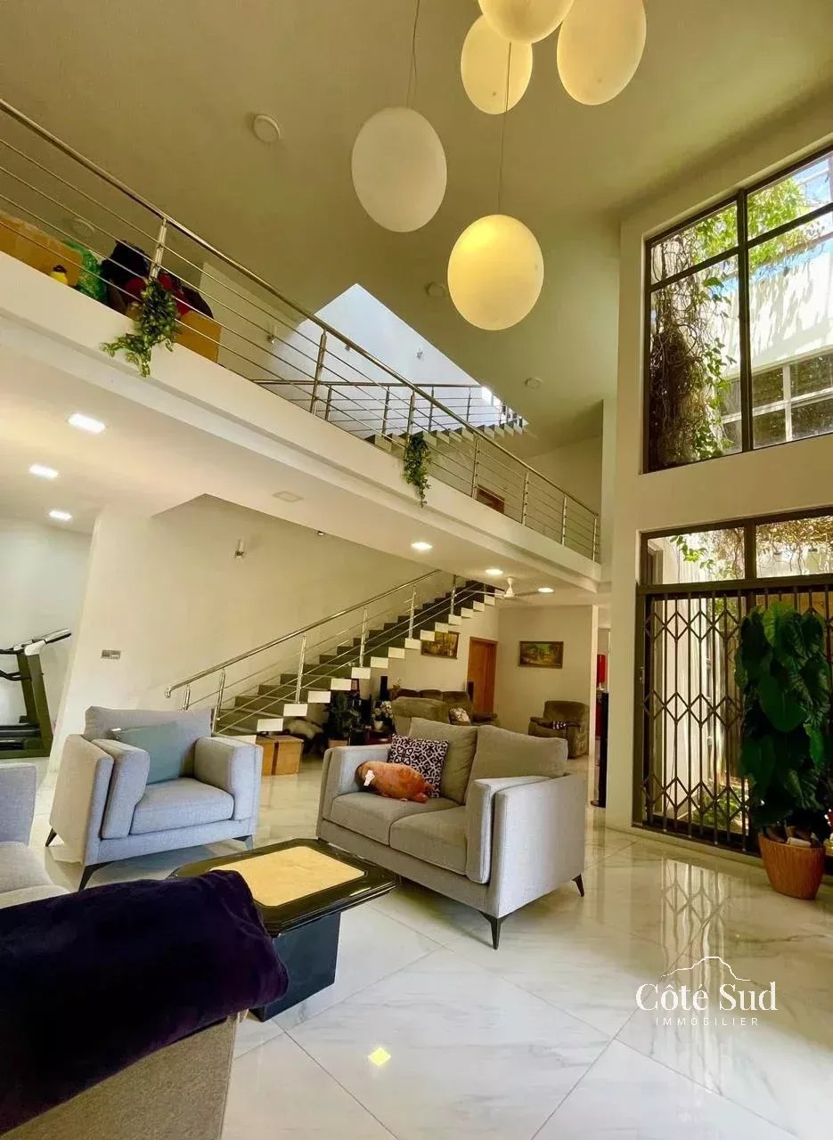 Édifiée sur un terrain d’environ 1 162 m² (environ 29 perches), cette maison de standing développe une surface habitable d’environ 306 m², complétée par une dépendance indépendante de 60 m², idéale pour recevoir ou pour un usage polyvalent.