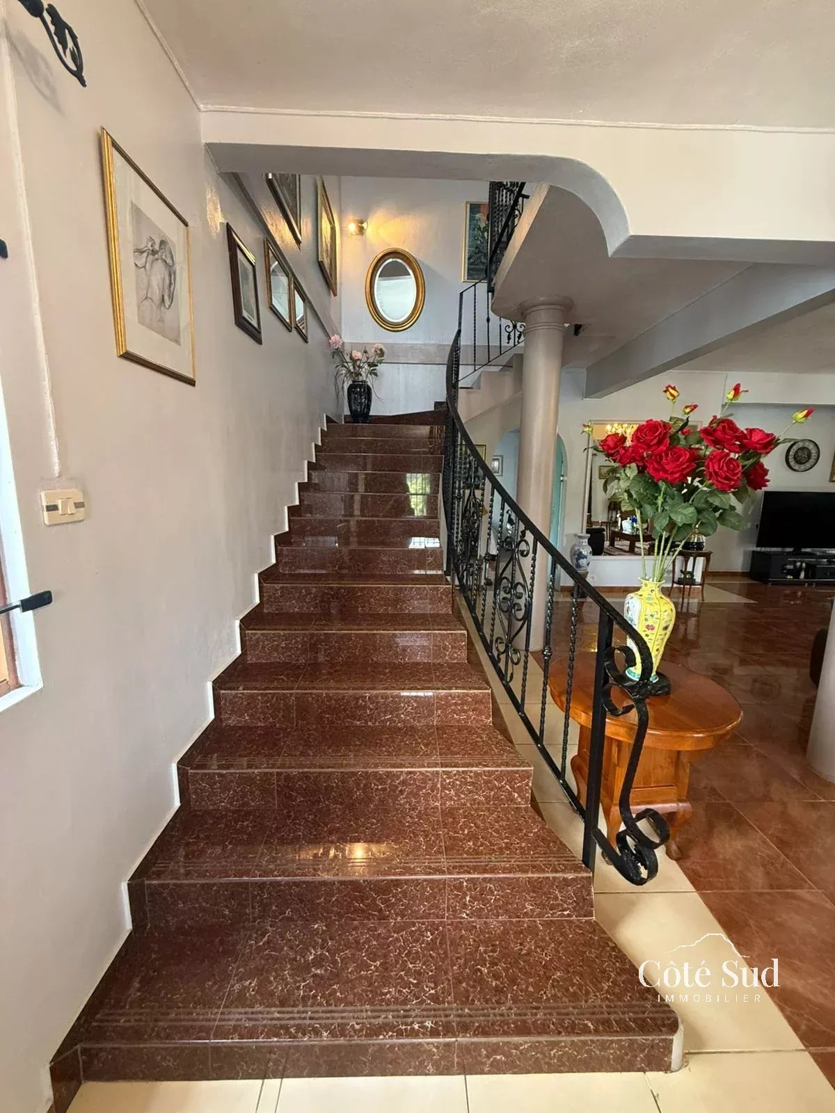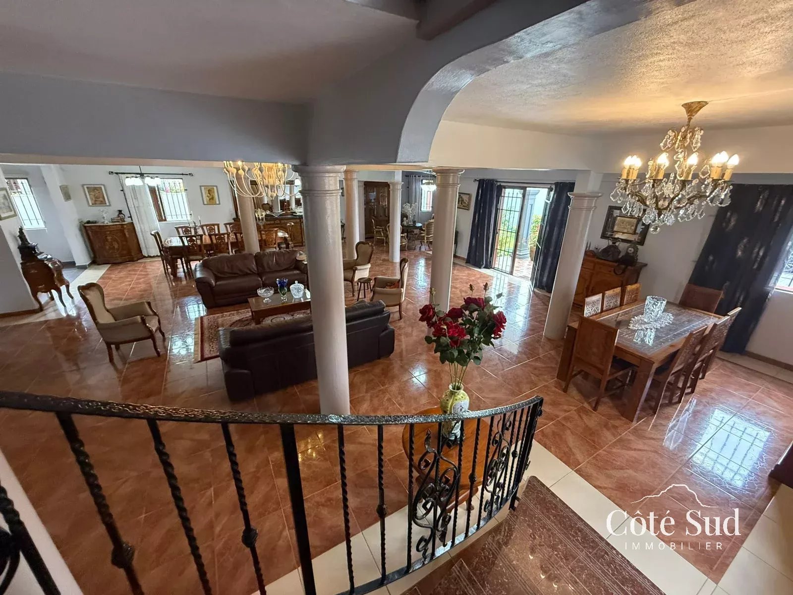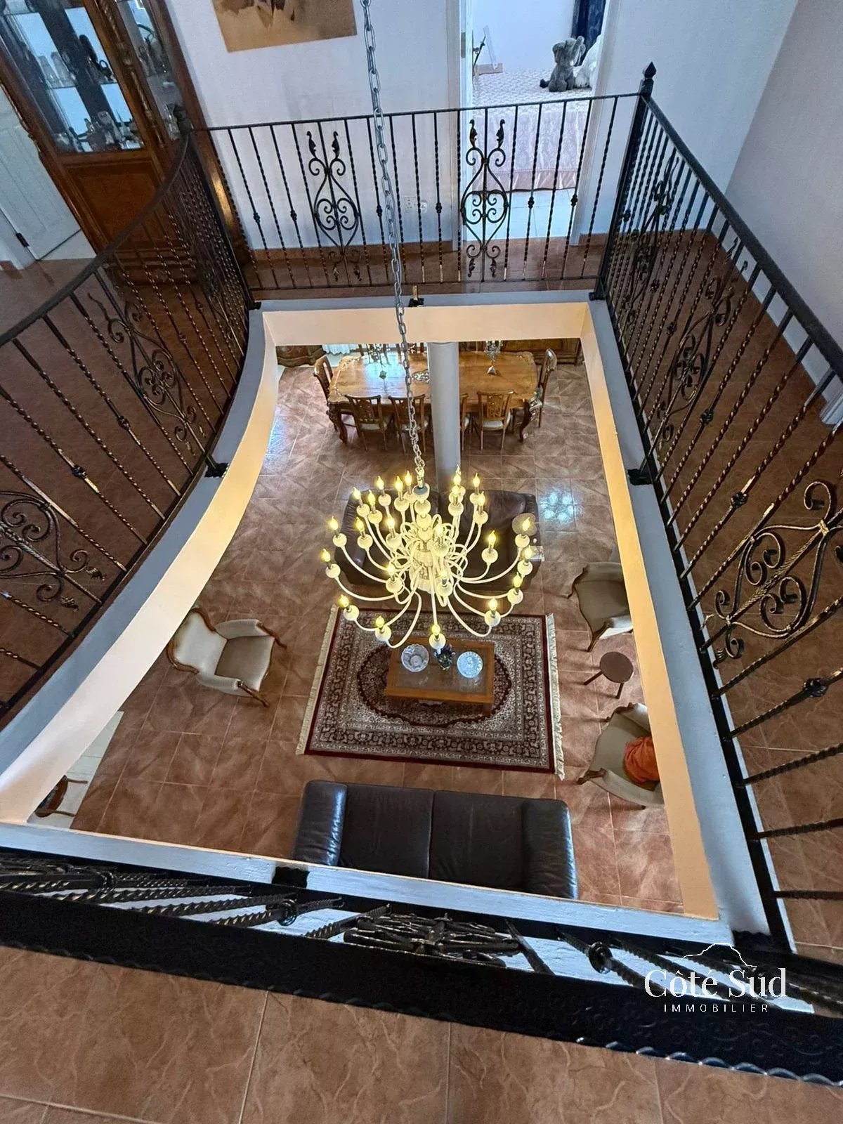 A l’intérieur, les 8 pièces spacieuses comprennent un vaste salon-séjour lumineux, accentué par de grandes baies vitrées et des lustres raffinés qui apportent une touche d’élégance. La salle à manger et le coin salon, ouverts et accueillants, permettent de recevoir facilement et de profiter d’une ambiance chaleureuse. Les finitions de qualité, telles que les sols carrelés et les éléments décoratifs, donnent un cachet unique à ce bien.