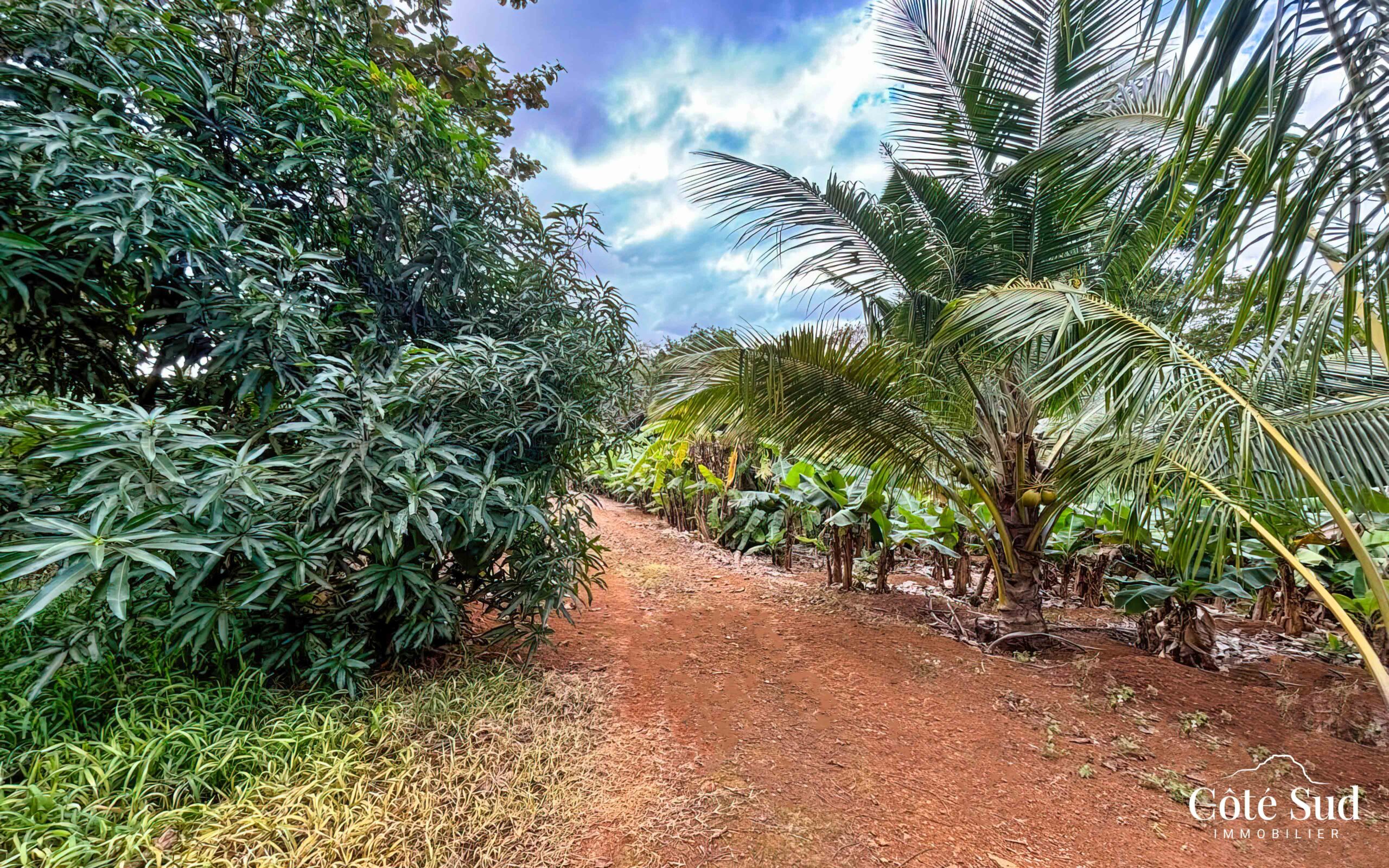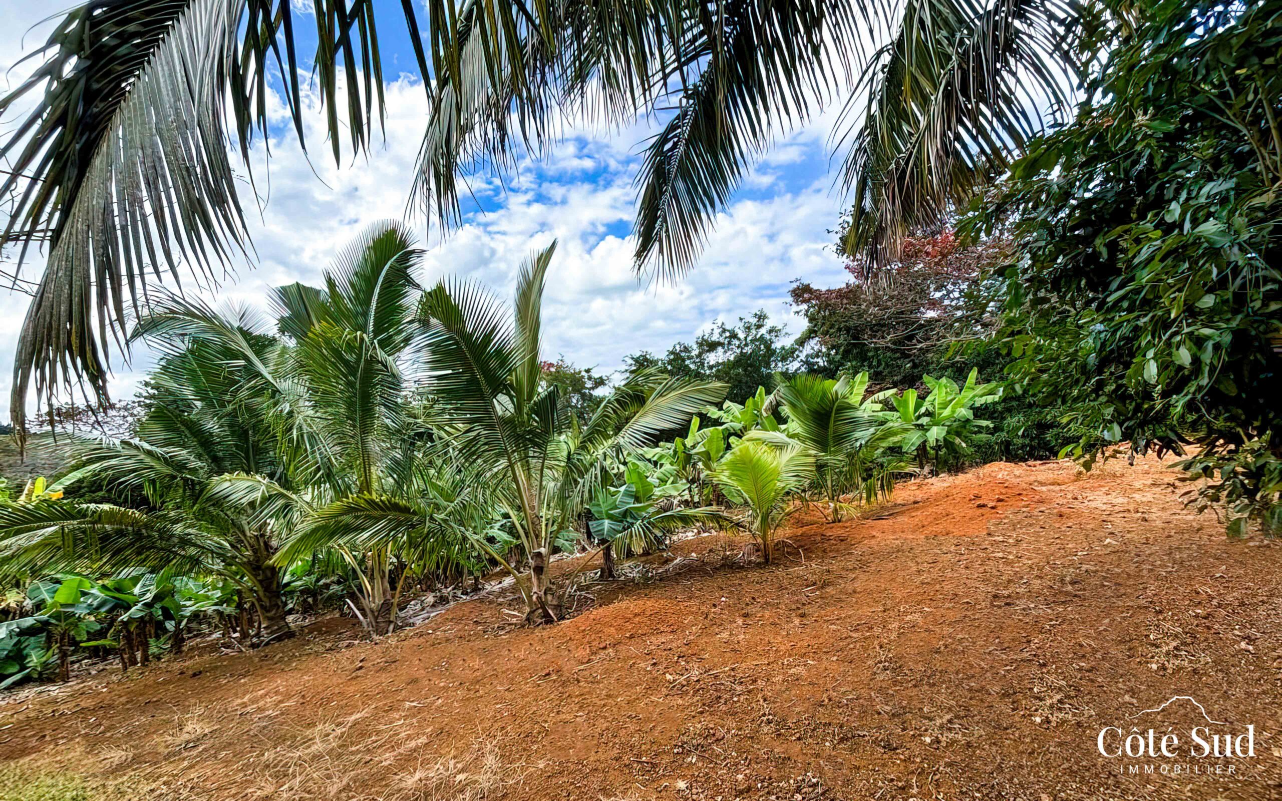 Terrain Résidentiel – Rivière des Créoles. Situé sur la route principale, ce grand terrain en pente de 1 519 m² a une vue magnifique sur la rivière. 761 m² peuvent servir à la construction d’une maison.